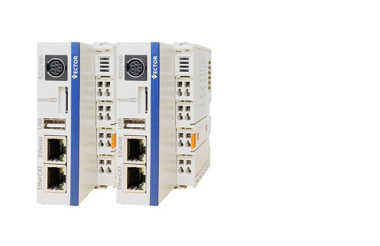 • 威科達VE系列運動控制器,搭載高性能CPU(4核1.6GHZ主頻)具有強大的運算能力,基于linux系統(tǒng),采?CODESYS編程?具,?持IEC61131-3國際標準的6種編程語?的高性能運動控制器。標配EtherCAT工業(yè)以太網(wǎng)實時總線,可以實現(xiàn)最大64軸同步控制。
